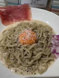 Located in the quiet residential district of Hatanodai in Shinagawa-ku, “NiboNiboChino” offers ramen that has undergone a unique evolution. After honing his skills at a prestigious dried sardine (niboshi) ramen establishment, the owner fused elements of Italian cuisine—which he had been familiar with since childhood—to create an unprecedented and innovative bowl.