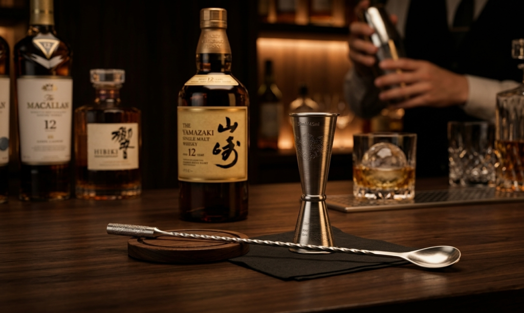A high-quality Japanese-made Jigger ensures an absolute ratio of ingredients, which is vital for maintaining the delicate balance of the spirit in a highball or cocktail. Furthermore, a Japanese Bar Spoon, crafted with a calculated twist, allows for a smooth, effortless stir that integrates the components without bruising the spirit. These are the logical choices for those who seek to explore the true essence of Japanese craftsmanship.